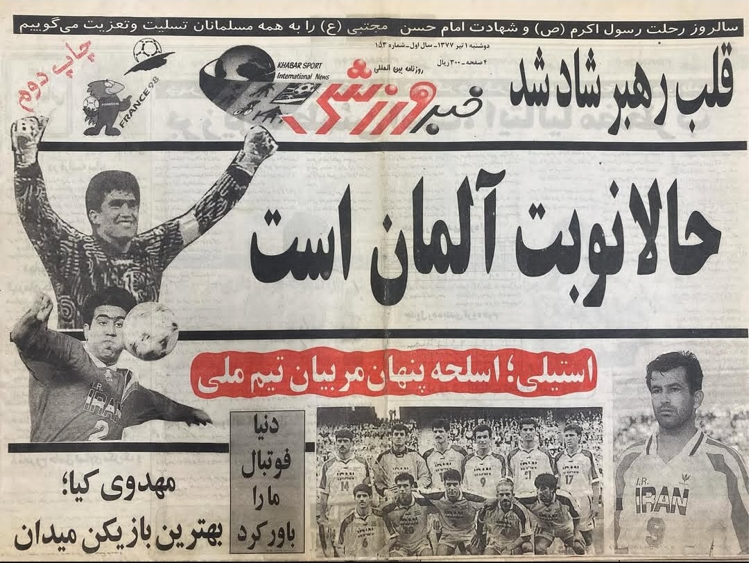 در روزگاری که اخبار خیلی دیر از سوی دیگر جهان به سویی دیگر می آمد، حتی تصویری هم از بازی ایران و آمریکا روی جلد روزنامه های صبح فردا دیده نمی شد. اما تیترها برای برد احتمالی ایران خالی مانده بود. روزنامه خبر ورزشی در چاپ دوم همان روز خود توانست عکسی از احمدرضا عابدزاده در حال شادی به چاپ برساند که مربوط به بازی دیشب بود و همین یک نوآوری در مطبوعات آن روز ایران به شمار می رفت. اما داستان ایران در آن جام جهانی بسیار عجیب بود...