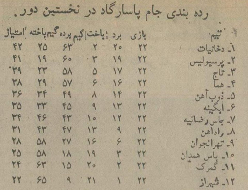 در نخستین دوره این مسابقات 12 تیم شرکت داشتند که مسابقات خود را از 11 مرداد تا 15 اسفند 1354 برگزار کردند. در آن روزها هر برد 2 و هر باخت یک امتیاز داشت و در پایان مسابقات تیم دخانیات تهران با مجموع 20 برد و دو باخت و کسب 42 امتیاز بالاتر از تیمهای پرسپولیس و تاج تهران قهرمان ایران شد. دخانیات در نیم فصل نخست هر ده مسابقه خود را با برد به پایان رسانده بود.
