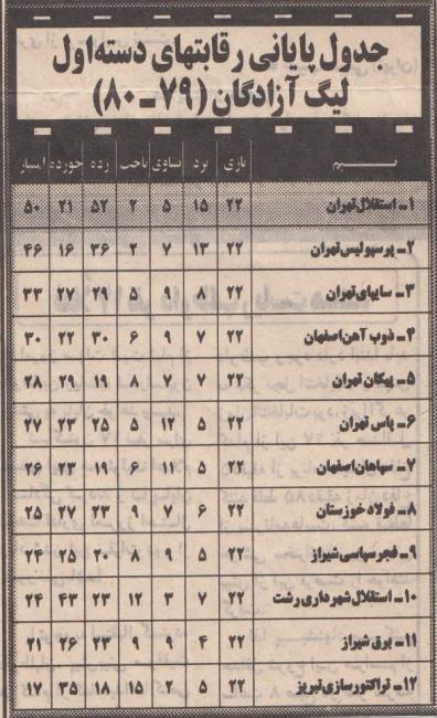 در این مسابقات دو تیم استقلال و پرسپولیس در حالی قهرمان و نایب قهرمان شدند که هر دو تیم تنها دو شکست در طول لیگ داشتند. یکی از باخت های دو تیم هم در هفته آخر نصیب آن ها شد. استقلال(2-1) از پاس تهران باخت و پرسپولیس مقابل سپاهان تن به شکست داد. البته زمانی که عناوین این دو تیم تثبیت شده بود تا شکست هر دو تیم تاثیری در عملکرد آن ها نداشته باشد. به این ترتیب استقلال 50 امتیاز کسب کرد و پرسپولیس هم 46 امتیاز. در حالی که نزدیک ترین رقیب این تیمها ( سایپا) تنها 33 امتیاز داشت!