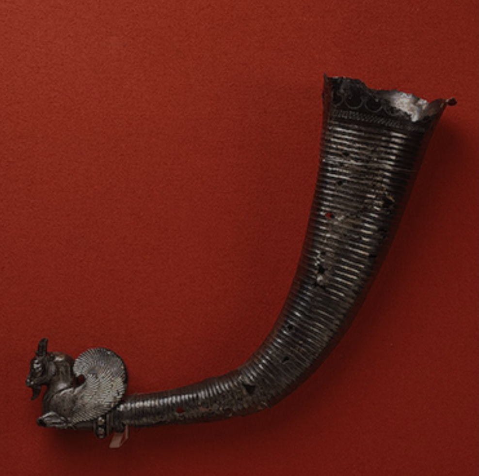 در موزه ارمیتاژ سن پترزبورگ ریتونی از دوره هخامنشی دیده می شود که جنس آن نقره است و شکل یک بز بالدار را نشان می دهد.