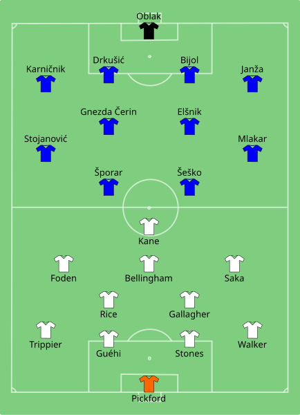 انگلیس با تساوی(0-0) مقابل اسلوونی و به لطف نتیجه بازی همزمان، صدرنشین گروه سوم یورو شد. هرچند انگلیس صدرنشین گروه خود شد و در سه بازی نیز تنها یک بار دروازه خود را باز شده دید، اما در فاز هجومی این تیم با مشکلات فراوانی روبه رو است و تنها دو بار طی سه بازی موفق به گلزنی شده است. آنچه در سه مسابقه این تیم در مرحله گروهی به عینه دیده شد، بن بست تاکتیکی شاگردان گرت ساوت گیت است که سبب شده روش 1-3-2-4 سه شیرها کمترین بازدهی ممکن را در برابر تیمهایی داشته باشد که هیچ کدام از آنها را نمی توان قدرت اول فوتبال اروپا دانست. بازیکنان انگلیس در بازی با اسلوونی نفرات زیر بودند