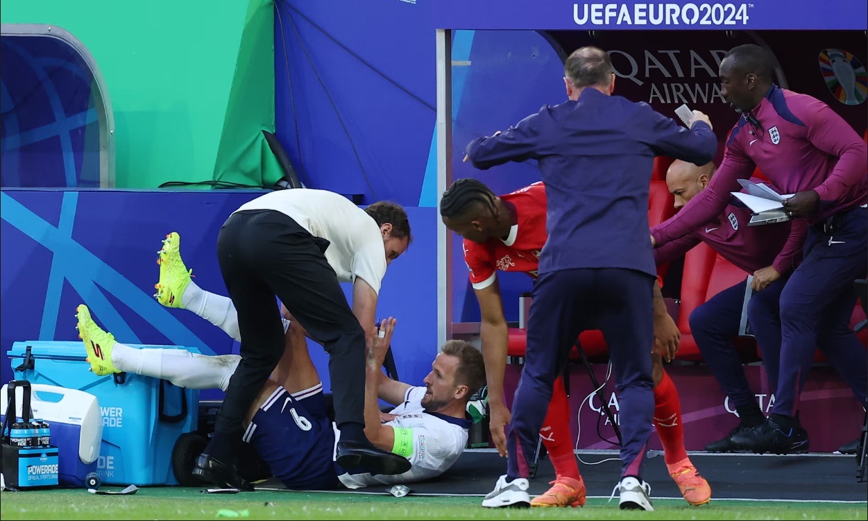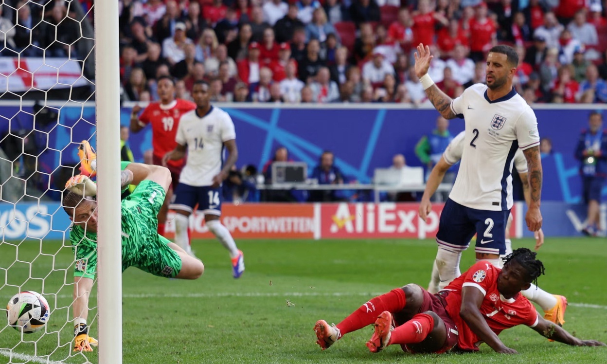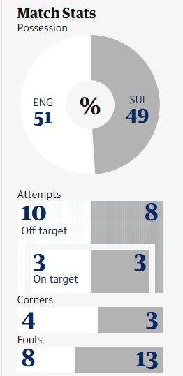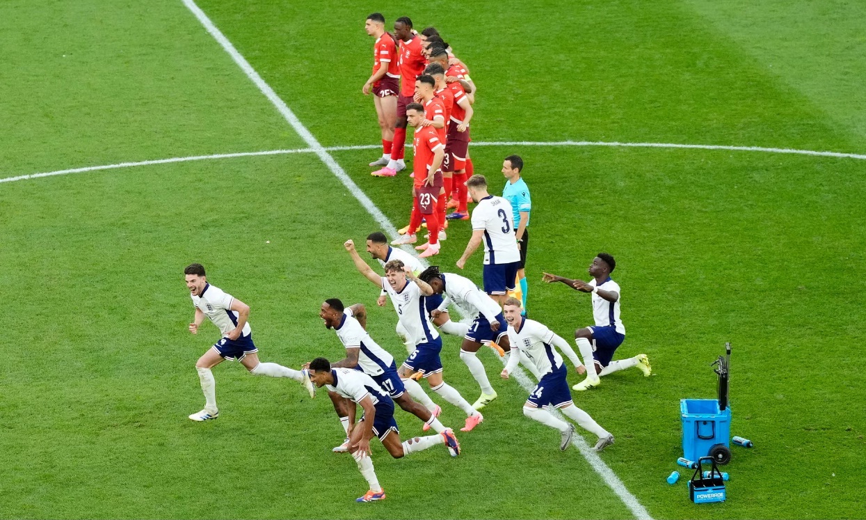 انگلیس باز هم در طول 90 دقیقه برنده نشد و باز هم صعود کرد! انگلیس در برابر سوئیس پنج دقیقه بازنده بود؛ در دقیقه 75 بریل امبولو روی یک سانتر زمینی از کناره فرصت گلزنی پیدا کرد و در شرایطی که باز هم تصور می شد سه شیرها شانس برد ندارند، شوت زمینی بوکایو ساکا از بین همه گذشت و دروازه سوئیس را گشود. در ادامه فرصتهای سوئیس برای گلزنی بهتر بود. اما این تیم نتیجه ای نگرفت و آن گاه در ضربات پنالتی، این جوردن پیکفورد دروازه بان انگلیس بود که بهتر عمل کرد و ضربه مانوئل آکانجی را گرفت. بطری آبی که در دستان پیکفورد بود، یک بطری کم نظیر بود که روی آن، جهت ضربه تمام بازیکنان سوئیس در آن نوشته شده بود. به این ترتیب انگلیس حریف هلند در نیمه نهایی شد. این بطری را در تصاویر مشاهده می کنید.