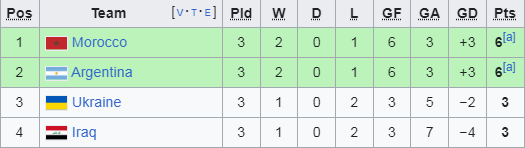 اما روز دوم بدون حاشیه به پایان رسید و آرژانتین با برتری(3-1) مقابل عراق و اوکراین با برد(2-1) در برابر مراکش، 3 امتیازی شدند تا همه تیمهای این گروه سه امتیازی باشند. جالب این که سومین گل مراکش در این تورنمنت را هم سفیانه رحیمی به ثمر رساند تا خودش هم 3 گله شود. روز سوم رقابتهای گروه دوم نیز در حالی برگزار شد که همه تیمها برای صعود شانسی مساوی داشتند. اما مراکش با برتری 3 برصفر مقابل عراق صدرنشین گروه شد و آرژانتین هم که(2-0) اوکراین را شکست داد، به دلیل شکست در بازی رودررو مقابل مراکش در رده دوم جدول قرار گرفت.