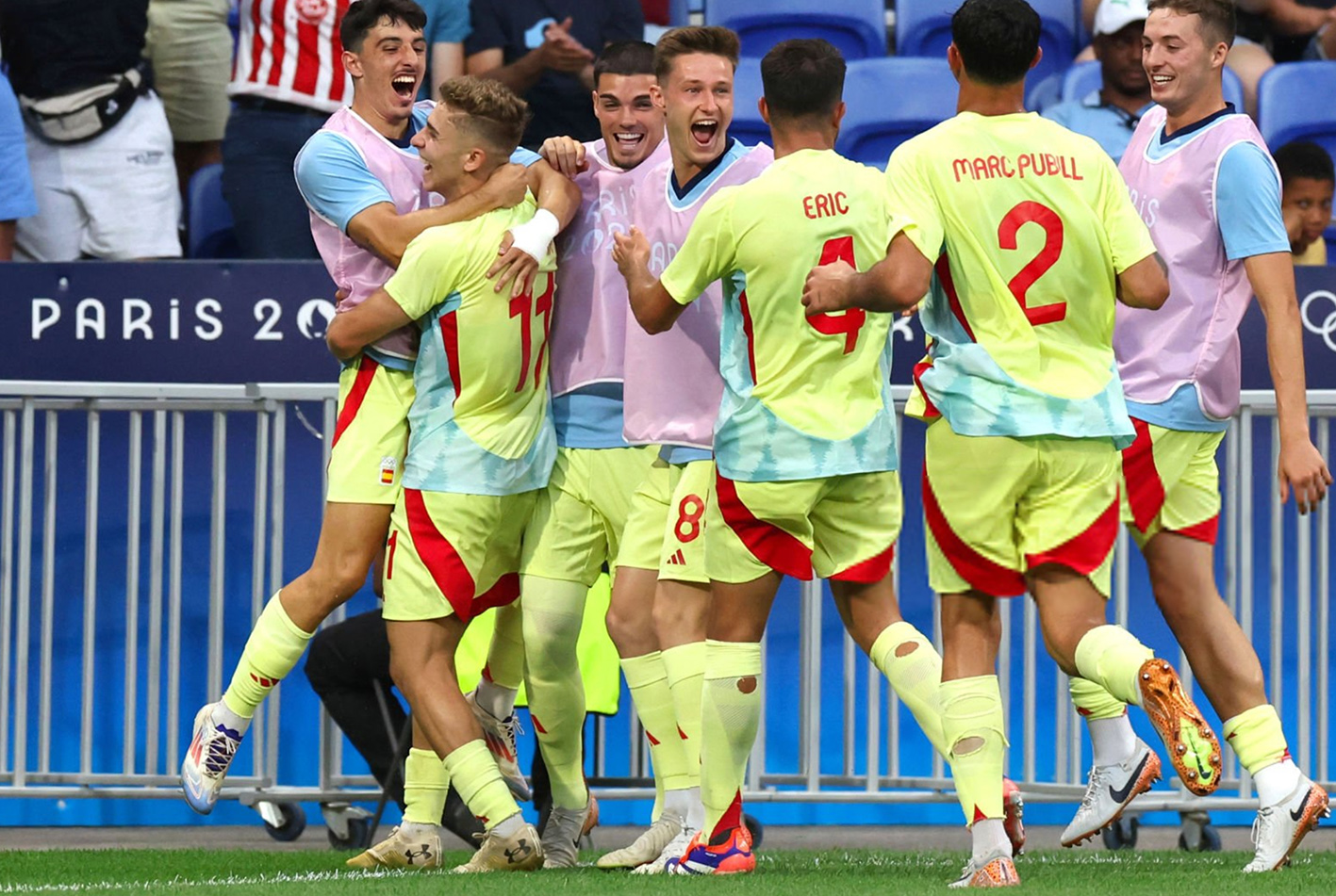 در اولین دیدار مرحله نیمه نهایی، مراکش و اسپانیا مقابل هم قرار گرفتند. مراکش همیشه رقیبی سرسخت برای اسپانیا بوده و این را در جام های جهانی 2018 و 2022 نیز به اثبات رساند. در المپیک هم مراکش ابتدا با پنالتی دقیقه 37 سفیانه رحیمی از حریف خود پیش افتاد. این ششمین گل رحیمی در تورنمنت بود و چهارمین پنالتی که به گل بدل می ساخت! با این حال به دنبال یک توپ سرگردان در محوطه جریمه مراکش، شوت فرمین لوپز در دقیقه 65 بازی را به تساوی کشاند و از آن به بعد اسپانیا به بازگشت امیدوار تر شد. در دقیقه 86 خوآن سانچز ولاسکو که مداقع سویا است، از خستگی بازیکنان حریف به بهترین شکل سود برد و در شرایطی که تا محوطه جریمه مراکش پیش آمده بود با یک شوت زمینی گل دوم اسپانیا را به ثمر رساند. این نتیجه برای صعود کافی بود و نایب قهرمان بازیهای 2020 یک بار دیگر به فینال مسابقات صعود کرد.