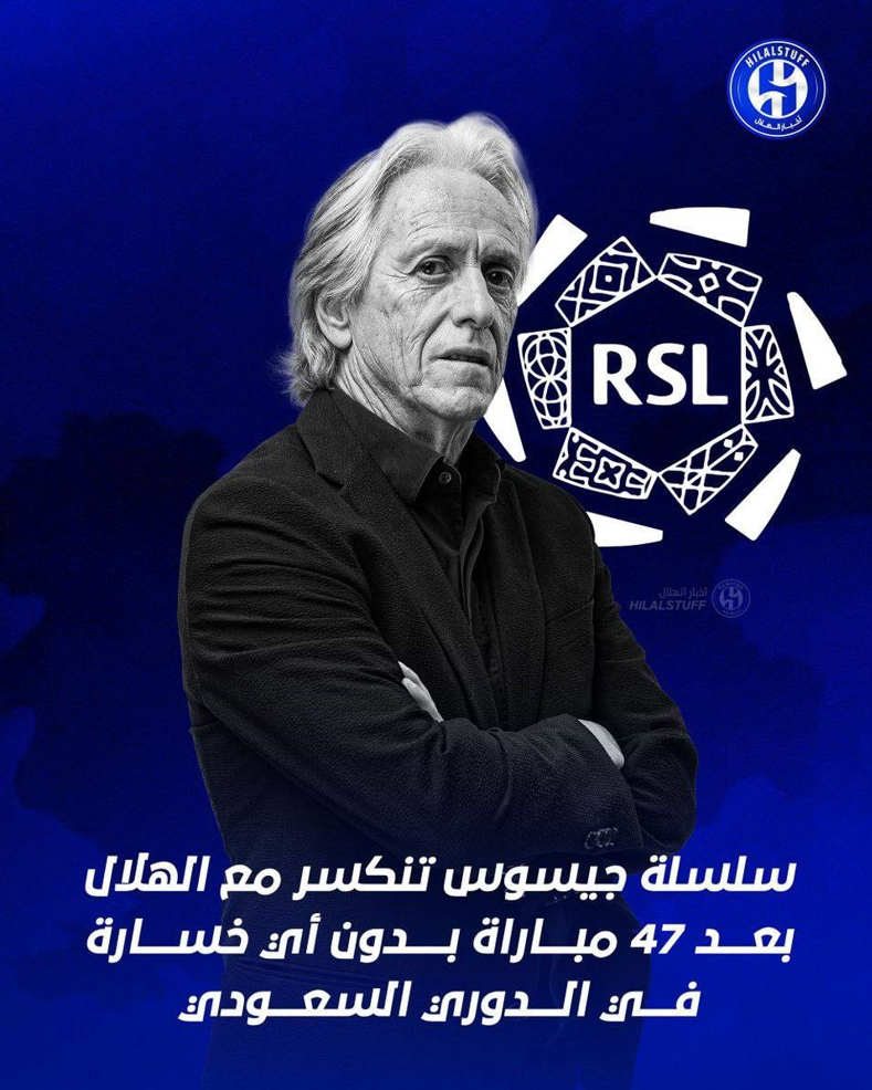 تیم الهلال در دو فصل اخیر توانست رکورد 57 بازی شکست ناپذیری در مسابقات داخلی را به ثبت رسانده و بالاتر از الاهلی قرار بگیرد که به طور کلی در 55 بازی داخلی شکست نخورده بود. این رکورد در تمامی مسابقات داخلی اعم از لیگ، جام حذفی و سوپرجام به دست آمده بود اما اگر رقابتهای لیگ را منظور کنیم، هنوز الهلال با 46 بازی بدون شکست، فاصله زیادی با رکورد 51 بازی بی شکست الاهلی داشت. الاهلی در آن ایام از کریستین گروس سوییسی و مربی اسبق تاتنهام استفاده می کرد که 43 بار از این بازیهای بی شکست را مربی الاهلی بود و رکورد او توسط ژرژ ژسوس شکسته شد، مربی الهلال به رکورد 47 دیدار بی شکست رسیده بود در حالی که در این مدت او در 103 مسابقه ای که مربی آبی ها بوده، صاحب 5 قهرمانی، 34 برد پیاپی در تمامی مسابقات، 86 برد، 12 مساوی و تنها 5 شکست شد.
