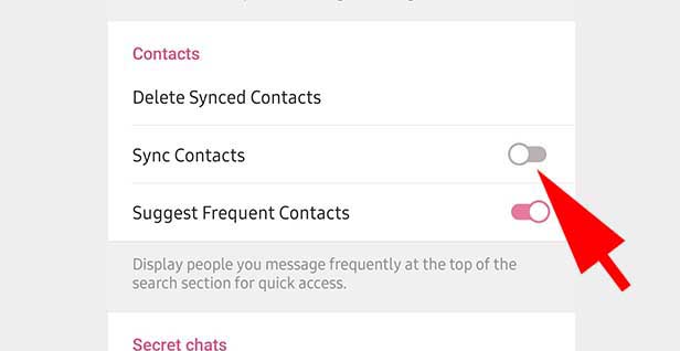 در همان بخش، گزینه Delete Synced Contacts (حذف مخاطبین همگامشده) را انتخاب کنید اگر میخواهید مخاطبین قبلی از سرورهای تلگرام حذف شوند.