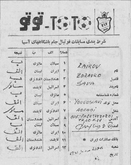 در بین نفراتی که برگه توتو پر کردند، نام زدراوکو رایکوف مربی مشهور تاج نیز دیده می شد که با پر کردن بخش پیش بینی هر 12 مسابقه، تبلیغ فوق العاده ای هم برای این مسابقه کرد. البته با کنار کشیدن یکی از تیمهای شرکت کننده، تعداد بازیها از 12 به 9 کاهش یافت ولی مهمتر از همه، اطلاعات شخصی رایکوف بود که در این برگه نوشته شد و به این ترتیب حالا بعد از نیم قرن می توانیم حتی محل زندگی و نام پدر این مربی را هم بدانیم!